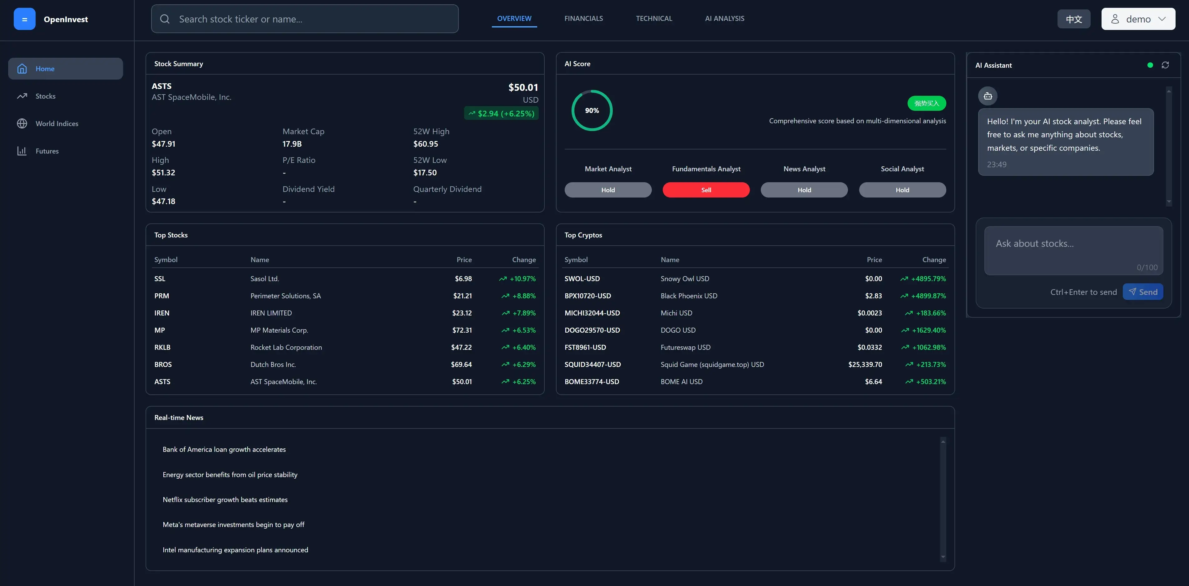 Support for major global stock markets, providing unified analysis interface and investment tools